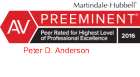Peter is rated AV Preeminent, the highest rating available from the nation’s foremost legal rating service, Martindale-Hubbell.